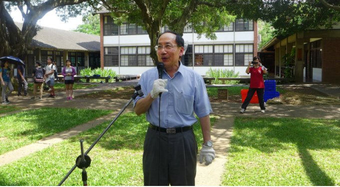 下午兩點,即便外頭氣溫高達32°C以上,全校長官、師生及行政人員皆紛紛起身集合,準備開始今天的全校勞作日打掃。曾紀鴻董事長及王茂駿校長帶領多位行政同仁,脫下西裝、捲起衣袖,親自帶領全體教職員生,齊心協力整理校園。