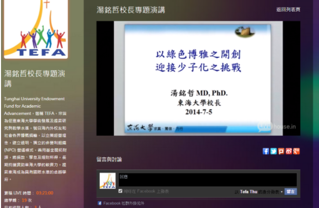 ,TEFA協助Live全球直播(價值NT$59,000元) 7/5中研院東海院士座談會。
